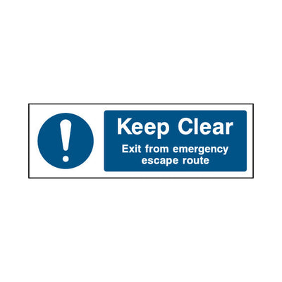 The Keep Clear - Exit From Emergency Escape Route sign falls under the Fire Prevention category. This sign is commonly used in various settings, including workplaces, schools, and public spaces, to enhance safety and compliance. This sign complies with UK health and safety standards, including B