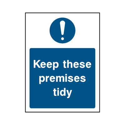 The Keep These Premises Tidy sign falls under the Machinery & General category. This sign is commonly used in various settings, including workplaces, schools, and public spaces, to enhance safety and compliance. This sign complies with UK health and safety standards, including BS ISO 7010, e