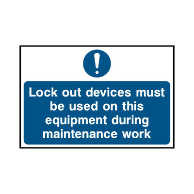 The Lock Out Devices Must Be Used On This Equipment During Maintenance… sign falls under the Lockout Signs category. This sign is commonly used in various settings, including workplaces, schools, and public spaces, to enhance safety and compliance. This sign complies with UK health and safety st