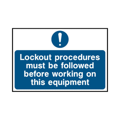 The Lockout Procedures Must Be Followed Before Working On This Equipment sign falls under the Lockout Signs category. This sign is commonly used in various settings, including workplaces, schools, and public spaces, to enhance safety and compliance. This sign complies with UK health and safety s