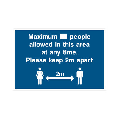 The Maximum People Allowed In This Area At Any Time. Please Keep 2m Apart sign falls under the Construction category. This sign is commonly used in various settings, including workplaces, schools, and public spaces, to enhance safety and compliance. This sign complies with UK health and safety s