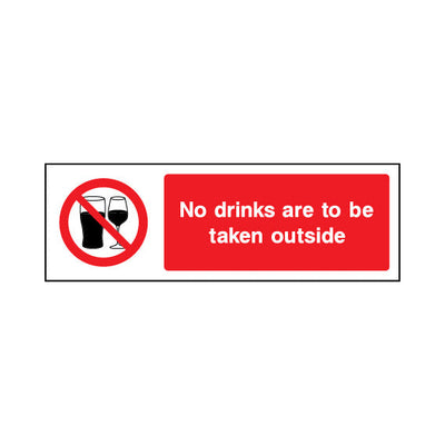 The No Drinks Are To Be Taken Outside sign falls under the General Prohibition category. This sign is commonly used in various settings, including workplaces, schools, and public spaces, to enhance safety and compliance. This sign complies with UK health and safety standards, including BS ISO 70