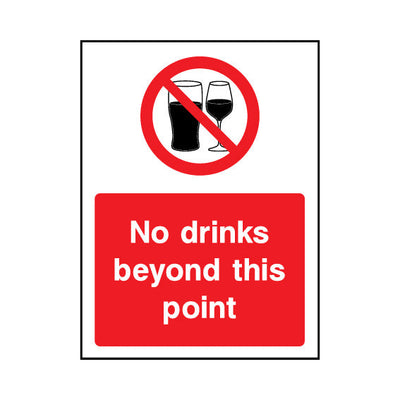 The No Drinks Beyond This Point sign falls under the General Prohibition category. This sign is commonly used in various settings, including workplaces, schools, and public spaces, to enhance safety and compliance. This sign complies with UK health and safety standards, including BS ISO 7010, en