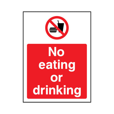 The No Eating Or Drinking sign falls under the General Prohibition category. This sign is commonly used in various settings, including workplaces, schools, and public spaces, to enhance safety and compliance. This sign complies with UK health and safety standards, including BS ISO 7010, ensuring