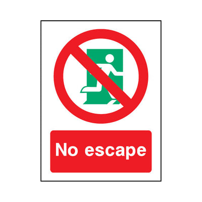 The No Escape sign falls under the Emergency Escape category. This sign is commonly used in various settings, including workplaces, schools, and public spaces, to enhance safety and compliance. This sign complies with UK health and safety standards, including BS ISO 7010, ensuring that it meets