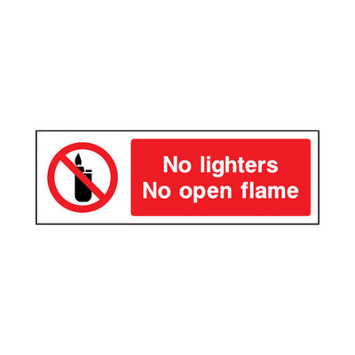 The No Lighters No Open Flame sign falls under the Smoking Prohibition category. This sign is commonly used in various settings, including workplaces, schools, and public spaces, to enhance safety and compliance. This sign complies with UK health and safety standards, including BS ISO 7010, ensu