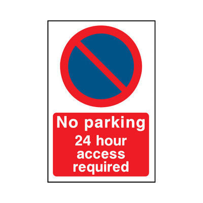 The No Parking - 24 Hour Access Required sign falls under the Parking category. Ideal for use in car parks, driveways, and loading bays to manage vehicle access and prevent obstructions. This sign complies with UK health and safety standards, including BS ISO 7010, ensuring that it meets legal r