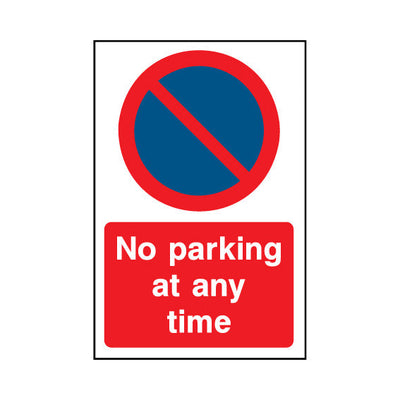 The No Parking At Any Time sign falls under the Parking category. Ideal for use in car parks, driveways, and loading bays to manage vehicle access and prevent obstructions. This sign complies with UK health and safety standards, including BS ISO 7010, ensuring that it meets legal requirements fo