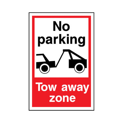 The No Parking - Tow Away Zone sign falls under the Parking category. Ideal for use in car parks, driveways, and loading bays to manage vehicle access and prevent obstructions. This sign complies with UK health and safety standards, including BS ISO 7010, ensuring that it meets legal requirement