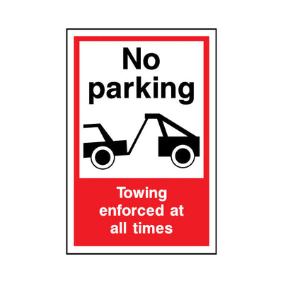 The No Parking - Towing Enforced At All Times sign falls under the Parking category. Ideal for use in car parks, driveways, and loading bays to manage vehicle access and prevent obstructions. This sign complies with UK health and safety standards, including BS ISO 7010, ensuring that it meets le
