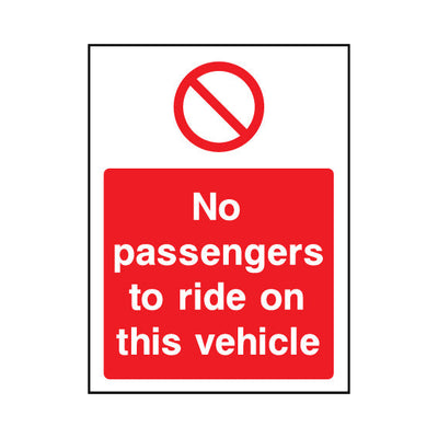 The No Passengers To Ride On This Vehicle sign falls under the General Prohibition category. This sign is commonly used in various settings, including workplaces, schools, and public spaces, to enhance safety and compliance. This sign complies with UK health and safety standards, including BS IS