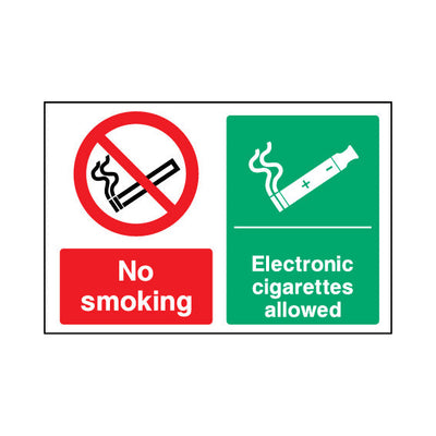 The No Smoking - Electronic Cigarettes Allowed sign falls under the Smoking Prohibition category. Essential for hospitals, schools, and public spaces to enforce smoke-free policies and comply with the Health Act 2006. This sign complies with UK health and safety standards, including BS ISO 7010, ensuring that it meets legal requirements for safety signage. By displaying this sign, you contribute to creating a safer environment while adhering to regulations. At One Printer, we make it easy to order the exact product you need. You can select from a range of materials and finishing options to suit your specific requirements. Our available materials include 1mm PVC, 3mm Foamex, 3mm Dibond, self-adhesive vinyl, anti-slip floor graphics, and removable magnetic. Finishing options include 3M double-sided tape or drill holes for easy installation. With One Printer, you can be confident that your signage meets the highest standards of safety, durability, and customisation, all backed by our expert customer support team. H&S Sign Product Code: SP047.