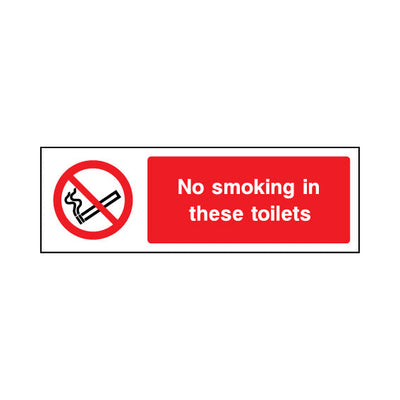The No Smoking In These Toilets sign falls under the Smoking Prohibition category. Essential for hospitals, schools, and public spaces to enforce smoke-free policies and comply with the Health Act 2006. This sign complies with UK health and safety standards, including BS ISO 7010, ensuring that