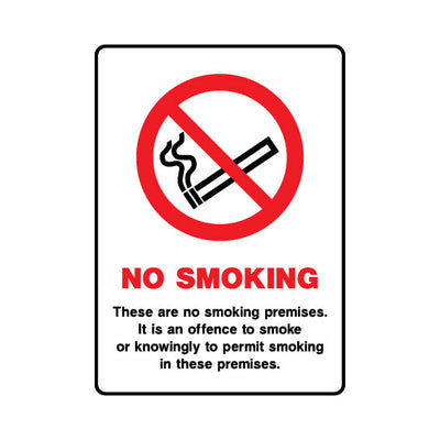 The No Smoking - These Are No Smoking Premises… sign falls under the Smoking Prohibition category. Essential for hospitals, schools, and public spaces to enforce smoke-free policies and comply with the Health Act 2006. This sign complies with UK health and safety standards, including BS ISO 7010