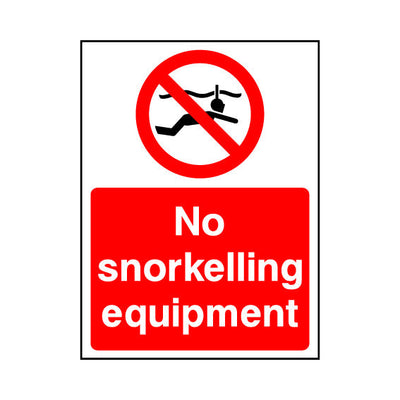 The No Snorkelling Equipment sign falls under the Water Safety category. This sign is commonly used in various settings, including workplaces, schools, and public spaces, to enhance safety and compliance. This sign complies with UK health and safety standards, including BS ISO 7010, ensuring tha