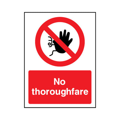The No Thoroughfare sign falls under the Access Restricted category. This sign is commonly used in various settings, including workplaces, schools, and public spaces, to enhance safety and compliance. This sign complies with UK health and safety standards, including BS ISO 7010, ensuring that it