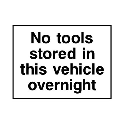 The No Tools Stored In This Vehicle Overnight sign falls under the Construction category. This sign is commonly used in various settings, including workplaces, schools, and public spaces, to enhance safety and compliance. This sign complies with UK health and safety standards, including BS ISO 7