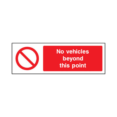 The No Vehicles Beyond This Point sign falls under the Access Restricted category. Ideal for use in car parks, driveways, and loading bays to manage vehicle access and prevent obstructions. This sign complies with UK health and safety standards, including BS ISO 7010, ensuring that it meets lega