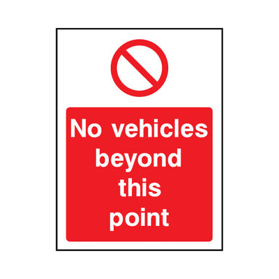 The No Vehicles Beyond This Point sign falls under the Machinery Prohibition category. Ideal for use in car parks, driveways, and loading bays to manage vehicle access and prevent obstructions. This sign complies with UK health and safety standards, including BS ISO 7010, ensuring that it meets