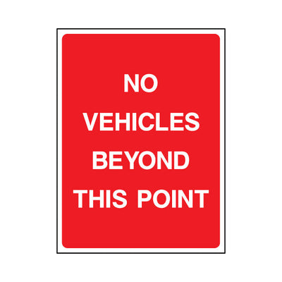 The No Vehicles Beyond This Point sign falls under the Parking category. Ideal for use in car parks, driveways, and loading bays to manage vehicle access and prevent obstructions. This sign complies with UK health and safety standards, including BS ISO 7010, ensuring that it meets legal requirem