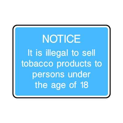 The Notice - It Is Illegal To Sell Tobacco Products To Persons Under The Age Of 18 sign falls under the Information Signs category. This sign is commonly used in various settings, including workplaces, schools, and public spaces, to enhance safety and compliance. This sign complies with UK heal