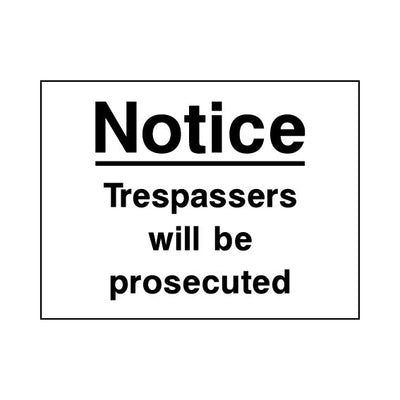 The Notice - Trespassers Will Be Prosecuted sign falls under the Security category. This sign is commonly used in various settings, including workplaces, schools, and public spaces, to enhance safety and compliance. This sign complies with UK health and safety standards, including BS ISO 7010, e