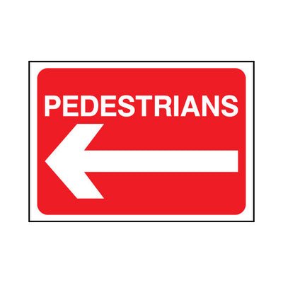 The Pedestrians (arrow Left) sign falls under the Temporary Road Traffic Warnings category. This sign is commonly used in various settings, including workplaces, schools, and public spaces, to enhance safety and compliance. This sign complies with UK health and safety standards, including BS ISO