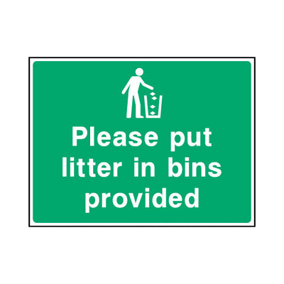 The Please Put Litter In Bins Provided sign falls under the Countryside & Agriculture category. This sign is commonly used in various settings, including workplaces, schools, and public spaces, to enhance safety and compliance. This sign complies with UK health and safety standards, includin