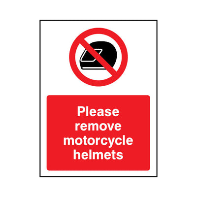 The Please Remove Motorcycle Helmets sign falls under the General Prohibition category. This sign is commonly used in various settings, including workplaces, schools, and public spaces, to enhance safety and compliance. This sign complies with UK health and safety standards, including BS ISO 701
