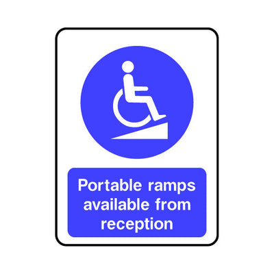 The Portable Ramps Available From Reception sign falls under the DDA Act category. This sign is commonly used in various settings, including workplaces, schools, and public spaces, to enhance safety and compliance. This sign complies with UK health and safety standards, including BS ISO 7010, en