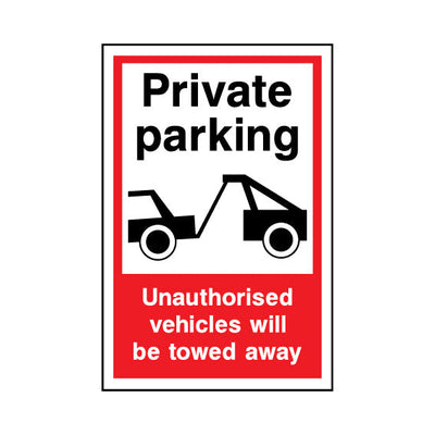 The Private Parking - Unauthorised Vehicles Will Be Towed Away sign falls under the Parking category. Ideal for use in car parks, driveways, and loading bays to manage vehicle access and prevent obstructions. This sign complies with UK health and safety standards, including BS ISO 7010, ensuring