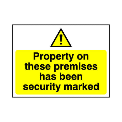 The Property On These Premises Has Been Security Marked sign falls under the Security category. This sign is commonly used in various settings, including workplaces, schools, and public spaces, to enhance safety and compliance. This sign complies with UK health and safety standards, including BS