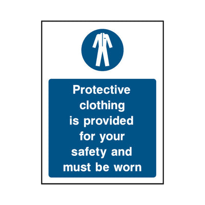 The Protective Clothing Is Provided For Your Safety And Must Be Worn sign falls under the Protective Clothing category. Used in construction sites, laboratories, and manufacturing facilities to ensure compliance with PPE regulations and protect workers from hazards. This sign complies with UK he