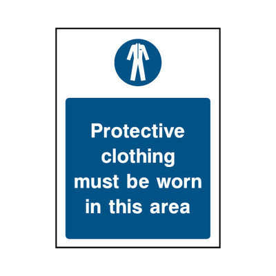 The Protective Clothing Must Be Worn In This Area sign falls under the Food Processing & Hygeine category. Used in construction sites, laboratories, and manufacturing facilities to ensure compliance with PPE regulations and protect workers from hazards. This sign complies with UK health and