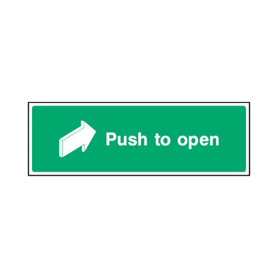 The Push To Open sign falls under the Emergency Escape category. This sign is commonly used in various settings, including workplaces, schools, and public spaces, to enhance safety and compliance. This sign complies with UK health and safety standards, including BS ISO 7010, ensuring that it mee