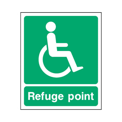 The Refuge Point - Disabled Icon sign falls under the Emergency Escape category. This sign is commonly used in various settings, including workplaces, schools, and public spaces, to enhance safety and compliance. This sign complies with UK health and safety standards, including BS ISO 7010, ensu
