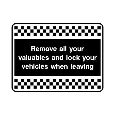The Remove All Your Valuables And Lock Your Vehicles When Leaving sign falls under the Security category. Ideal for use in car parks, driveways, and loading bays to manage vehicle access and prevent obstructions. This sign complies with UK health and safety standards, including BS ISO 7010, ensu