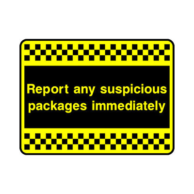 The Report Any Suspicious Packages Immediately sign falls under the Security category. This sign is commonly used in various settings, including workplaces, schools, and public spaces, to enhance safety and compliance. This sign complies with UK health and safety standards, including BS ISO 7010