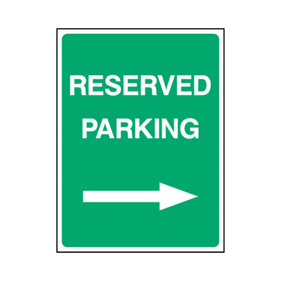 The Reserved Parking (arrow Right) sign falls under the Parking category. This sign is commonly used in various settings, including workplaces, schools, and public spaces, to enhance safety and compliance. This sign complies with UK health and safety standards, including BS ISO 7010, ensuring th