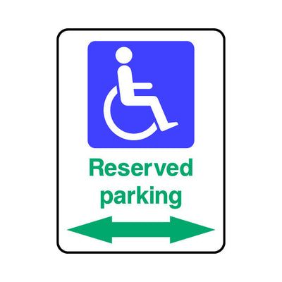 The Reserved Parking - Disabled Icon - Arrow Both Ways sign falls under the DDA Act category. This sign is commonly used in various settings, including workplaces, schools, and public spaces, to enhance safety and compliance. This sign complies with UK health and safety standards, including BS I