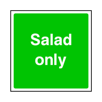 The Salad Only Square sign falls under the Food Processing & Hygeine category. This sign is commonly used in various settings, including workplaces, schools, and public spaces, to enhance safety and compliance. This sign complies with UK health and safety standards, including BS ISO 7010, ensuring that it meets legal requirements for safety signage. By displaying this sign, you contribute to creating a safer environment while adhering to regulations. At One Printer, we make it easy to order the exact product you need. You can select from a range of materials and finishing options to suit your specific requirements. Our available materials include 1mm PVC, 3mm Foamex, 3mm Dibond, self-adhesive vinyl, anti-slip floor graphics, and removable magnetic. Finishing options include 3M double-sided tape or drill holes for easy installation. With One Printer, you can be confident that your signage meets the highest standards of safety, durability, and customisation, all backed by our expert customer support team. H&S Sign Product Code: FPH098.