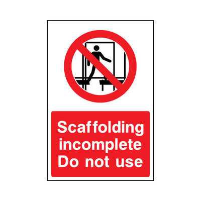 The Scaffolding Incomplete Do Not Use sign falls under the Construction category. This sign is commonly used in various settings, including workplaces, schools, and public spaces, to enhance safety and compliance. This sign complies with UK health and safety standards, including BS ISO 7010, ens