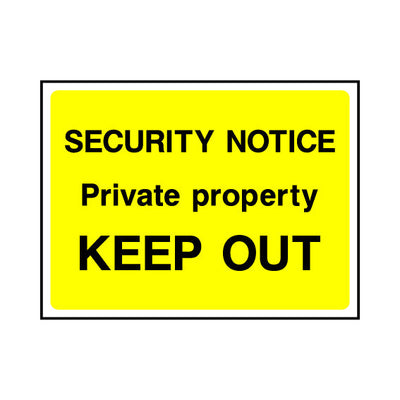The Security Notice - Private Property Keep Out sign falls under the Security category. This sign is commonly used in various settings, including workplaces, schools, and public spaces, to enhance safety and compliance. This sign complies with UK health and safety standards, including BS ISO 701