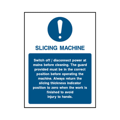 The Slicing Machine Info sign falls under the Food Processing & Hygeine category. This sign is commonly used in various settings, including workplaces, schools, and public spaces, to enhance safety and compliance. This sign complies with UK health and safety standards, including BS ISO 7010,