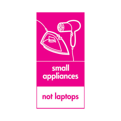 The Small Appliances Disposal - Not Laptops V3 sign falls under the Electrical Recycling category. This sign is commonly used in various settings, including workplaces, schools, and public spaces, to enhance safety and compliance. This sign complies with UK health and safety standards, including