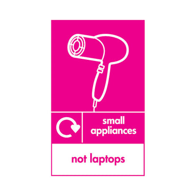 The Small Appliances Recycling Icon - Not Laptops V2 sign falls under the Electrical Recycling category. This sign is commonly used in various settings, including workplaces, schools, and public spaces, to enhance safety and compliance. This sign complies with UK health and safety standards, inc
