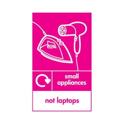 The Small Appliances Recycling Icon - Not Laptops V3 sign falls under the Electrical Recycling category. This sign is commonly used in various settings, including workplaces, schools, and public spaces, to enhance safety and compliance. This sign complies with UK health and safety standards, inc