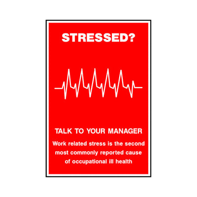 The Stressed? Talk To Your Manager sign falls under the Safety Posters category. This sign is commonly used in various settings, including workplaces, schools, and public spaces, to enhance safety and compliance. This sign complies with UK health and safety standards, including BS ISO 7010, ensu