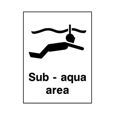 The Sub - Aqua Area sign falls under the Water Safety category. This sign is commonly used in various settings, including workplaces, schools, and public spaces, to enhance safety and compliance. This sign complies with UK health and safety standards, including BS ISO 7010, ensuring that it meet