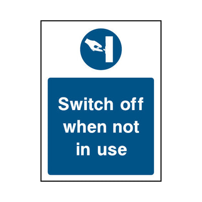 The Switch Off When Not In Use sign falls under the Machinery & General category. This sign is commonly used in various settings, including workplaces, schools, and public spaces, to enhance safety and compliance. This sign complies with UK health and safety standards, including BS ISO 7010,